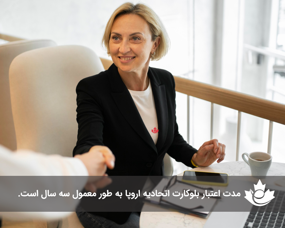 مدت اعتبار بلوکارت اتحادیه اروپا به طور معمول سه سال است. این مدت زمانی است که به شما اجازه میدهد در کشور عضو اتحادیه اروپا زندگی و کار کنید.