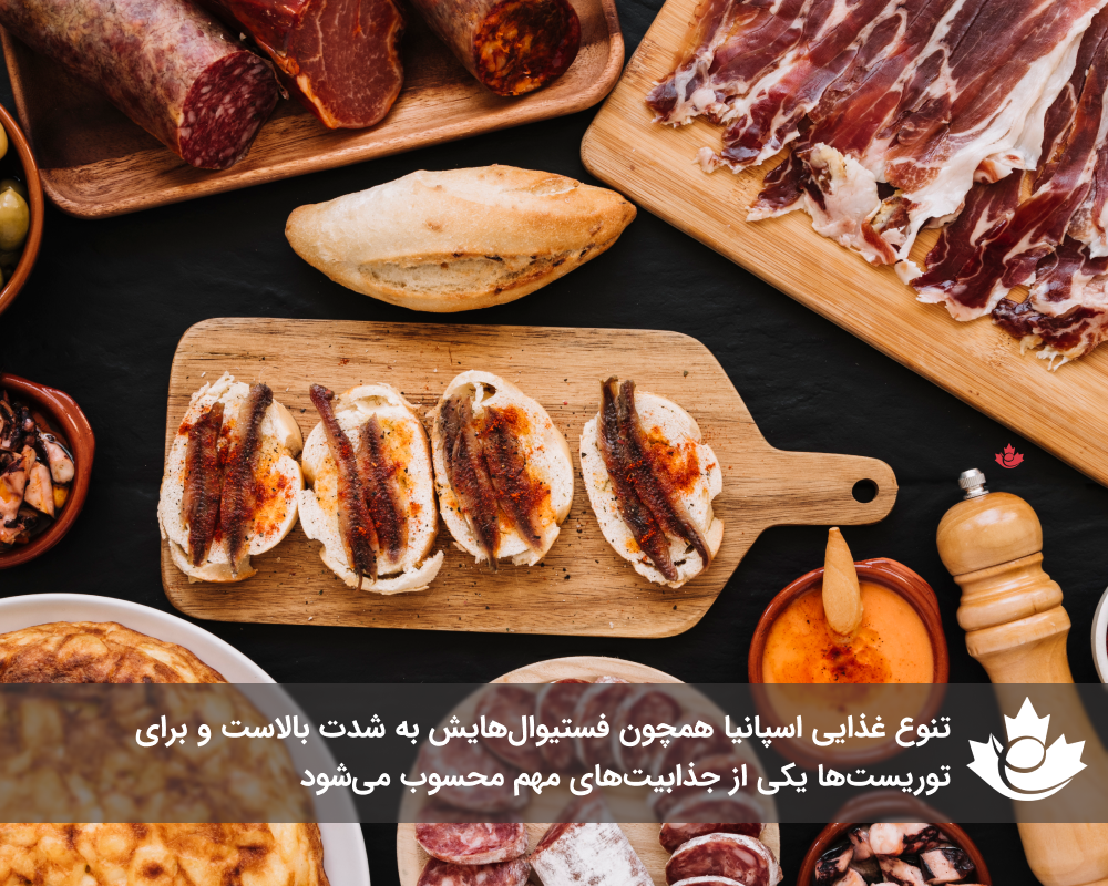 غذا در اسپانیا فقط خوراک نیست، بلکه بخش مهمی از فرهنگ زندگیست. «تاپاس» بشقابهای کوچک غذاهای متنوعی هستند که برای اشتراک در جمع سرو میشوند. «پائیا» غذایی شامل برنج، زعفران، سبزیجات و غذاهای دریاییست که طعمی ماندگار دارد.