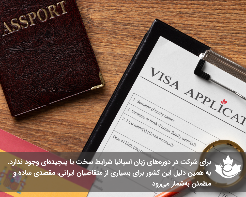 برای تحصیل در دورههای زبان اسپانیا، دانشجویان ایرانی نیازمند دریافت ویزای تحصیلی اسپانیا هستند. مدارک اصلی موردنیاز برای این ویزا عبارتند از: